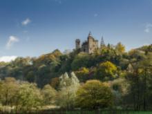 Alton Castle There are two buildings to describe: a ruined 12th century castle, visible from within the grounds, and a victorian building, visible from across the valley from its prominent, cliff-top position. Only the moat and 12th century remains are scheduled buildings. Alton, Pugin |